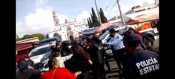 Amecameca, Estado de México.,19 de diciembre 2022.- Comerciantes ambulantes agredieron esta tarde a personal de la Dirección de Reglamentos, Comercio, Jurídico y Policías Municipales, cuando acudieron a notificarlos sobre el programa de reordenamiento de las calles del centro histórico de esta comunidad.