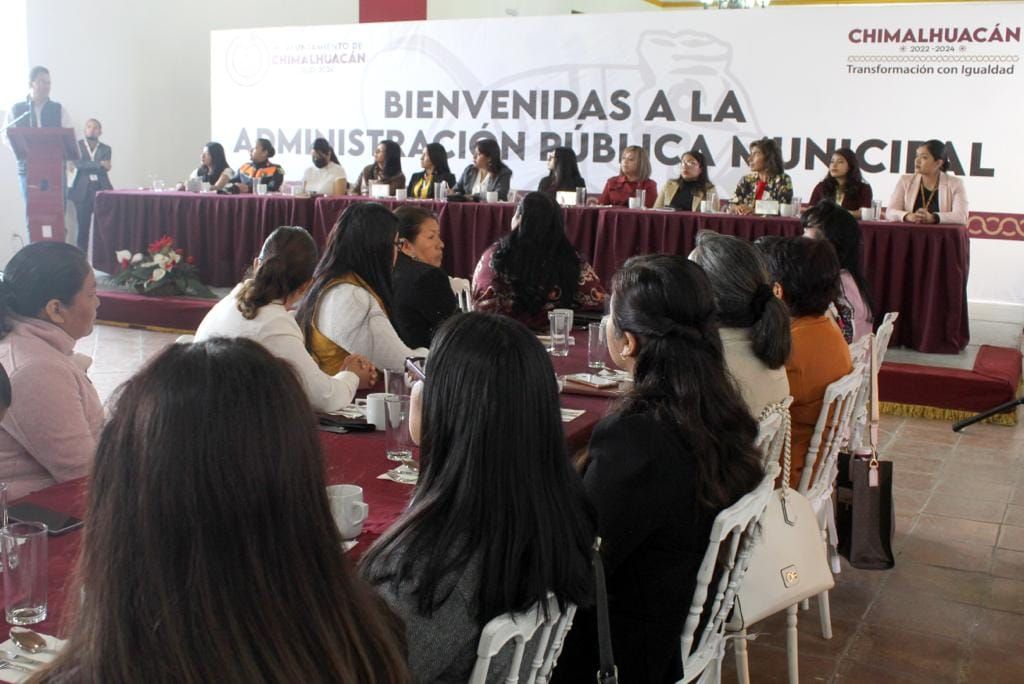 ’Antes, los cargos a las mujeres se les conferían donde no tomaran decisiones, hoy ya no es así, por eso lanzamos esta convocatoria transparente y abierta para mujeres; algunas van a llegar a ser directoras y jefas de área, aquí es parejo, todas tienen la confianza y si entregan resultados, adelante. Siéntanse reconocidas por su esfuerzo, ya son parte de esta administración, de esta transformación, todas vamos a ser un solo equipo, porque necesitamos sacar adelante a nuestro municipio’, dijo la Alcaldesa Flores Jiménez a las nuevas servidoras públicas, en su mensaje de bienvenida.