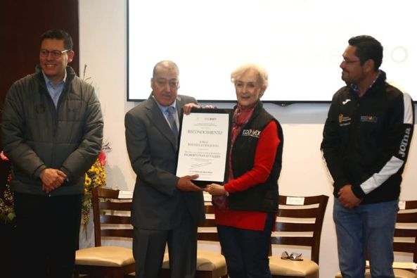 En compañía del Director de Relaciones Institucionales del Club Deportivo Toluca, Roberto Salgado, el encargado de Oficina de la Dirección General de Cultura Física y Deporte, Sergio Castañón Moreno, y el Subdirector de Alto Rendimiento, Luis Antonio Mora, la titular de Cultura y Turismo, a nombre del Gobernador del Estado de México, Alfredo Del Mazo Maza, entregó este premio que reconoce a quienes con su trabajo impulsen, promuevan e inspiren a las nuevas generaciones de mexiquenses.