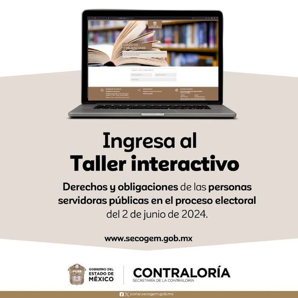 En este sentido, la Secretaría de la Contraloría dispuso de un taller virtual para que las personas servidoras públicas de las distintas dependencias y organismos auxiliares del Ejecutivo Estatal conozcan sus principales derechos y obligaciones en la materia; dicho recurso informático, se encuentra en el sitio web: https://secogem.gob.mx/tallerelectoral/