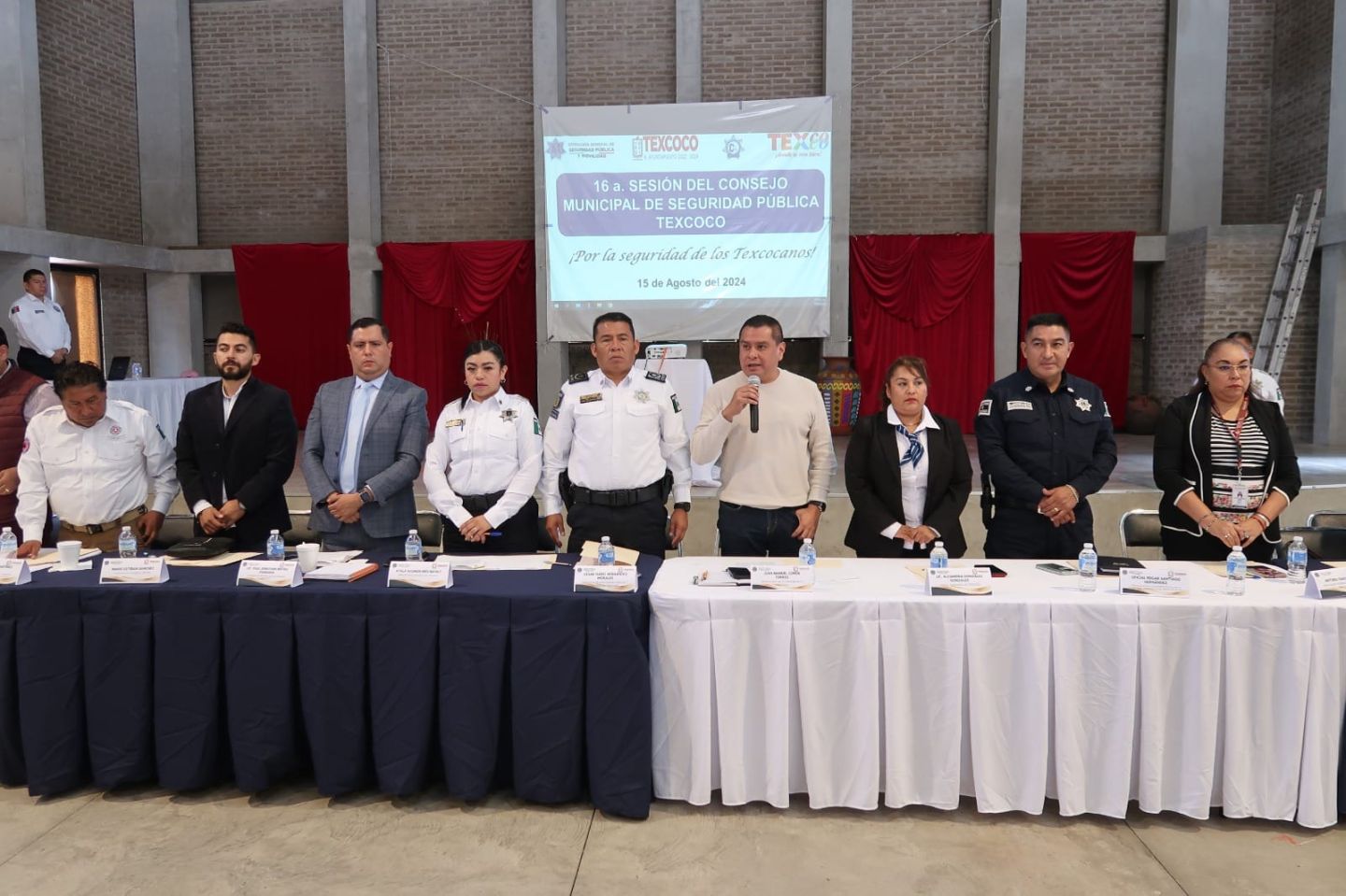 Texcoco, Estado de México., 15 de agosto de 2024.- En la 16ª sesión del Consejo Municipal de Seguridad Pública en Texcoco; la Dirección de Seguridad Pública Municipal, Directores de las diferentes áreas del gobierno, delegados, transportistas y público en general coincidieron en que la coordinación entre gobierno y ciudadanía ha ayudado para mejorar la seguridad en Texcoco y alrededores.